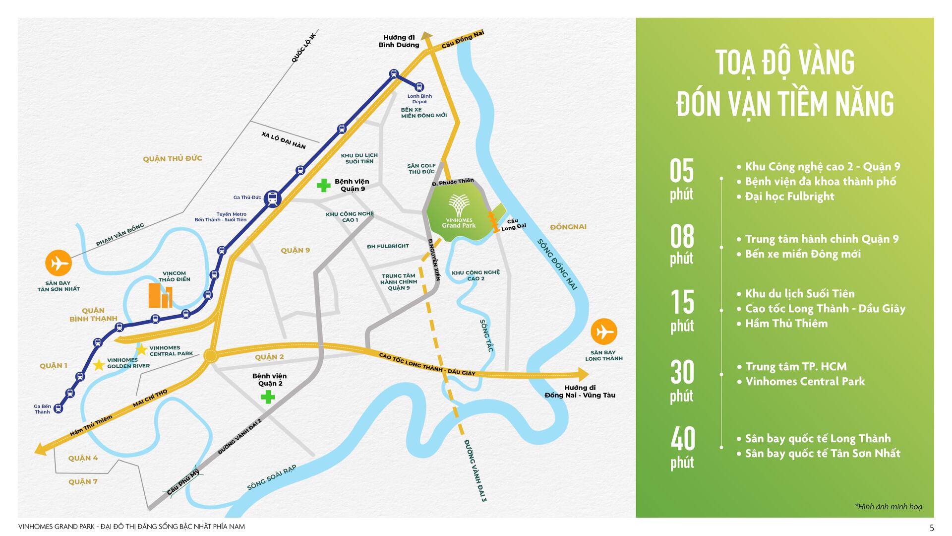 - 20 phút đến Q.1, 10 phút đến Khu công nghệ cao & Đại học Quốc Gia